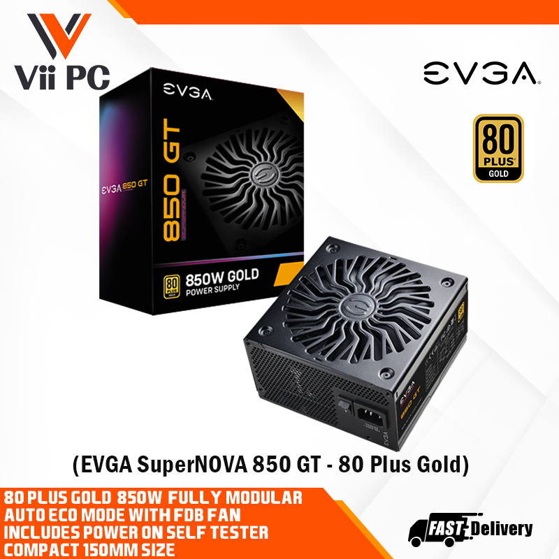 EVGA SuperNOVA 850 GT - 80 Plus Gold, 850W, Fully Modular, Auto Eco Mode with FDB Fan Power Supply