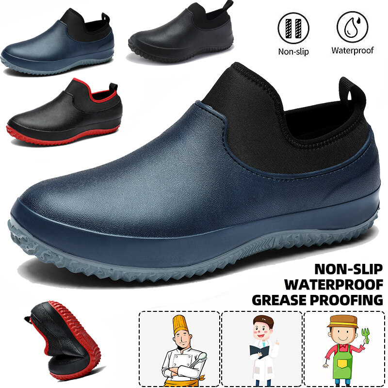 Chef Shoes Men and Women Slip on Waterproof High Quality Non-slip Waterproof Oil-proof Kitchen Work Shoes for Chef Master Cook Hotel Restaurant Slippers Flat Sandals Croc Men Water Shoes