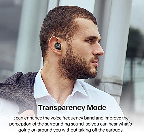 • 【 Transparency Mode】With the transparency mode, you can hear what you want to hear, which lets outside sound in so you can hear and interact with the world around you. You can clearly hear the announcement of the airline or subway and what is saying around you without taking off the headphones.
