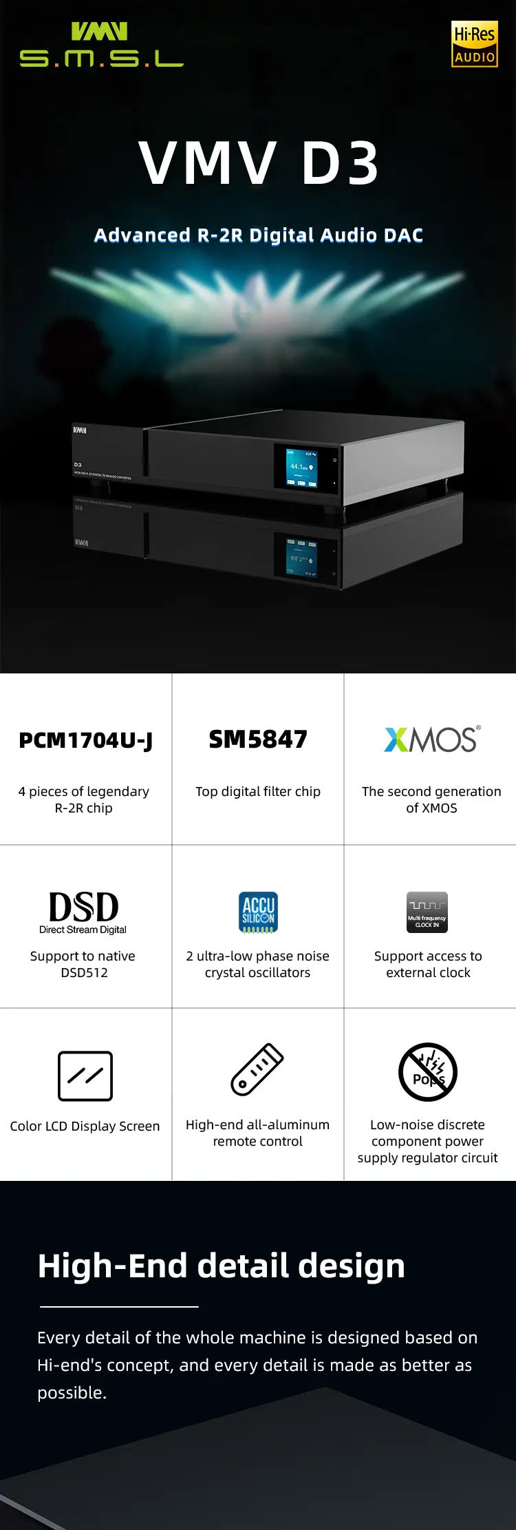 SMSL VMV D3, Quad PCM1704 Burr Brown R2R DAC, Hi-Res +MQA decode, ACCUSILICON precision clock, Hifi Audio