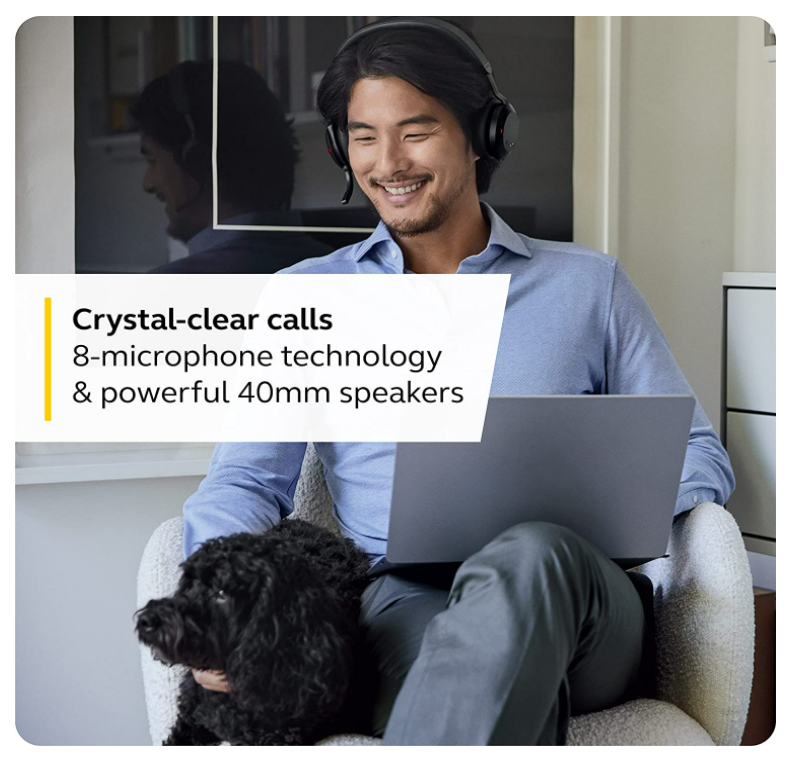 Crystal-clear calls.Eight precision-placed microphones and a revolutionary triple chipset-powered Jabra algorithm filter out the noise around you, meeting Microsoft’s Open Office requirements to effectively block unwanted sound and focus solely on your voice, for crystal-clear calls anywhere.