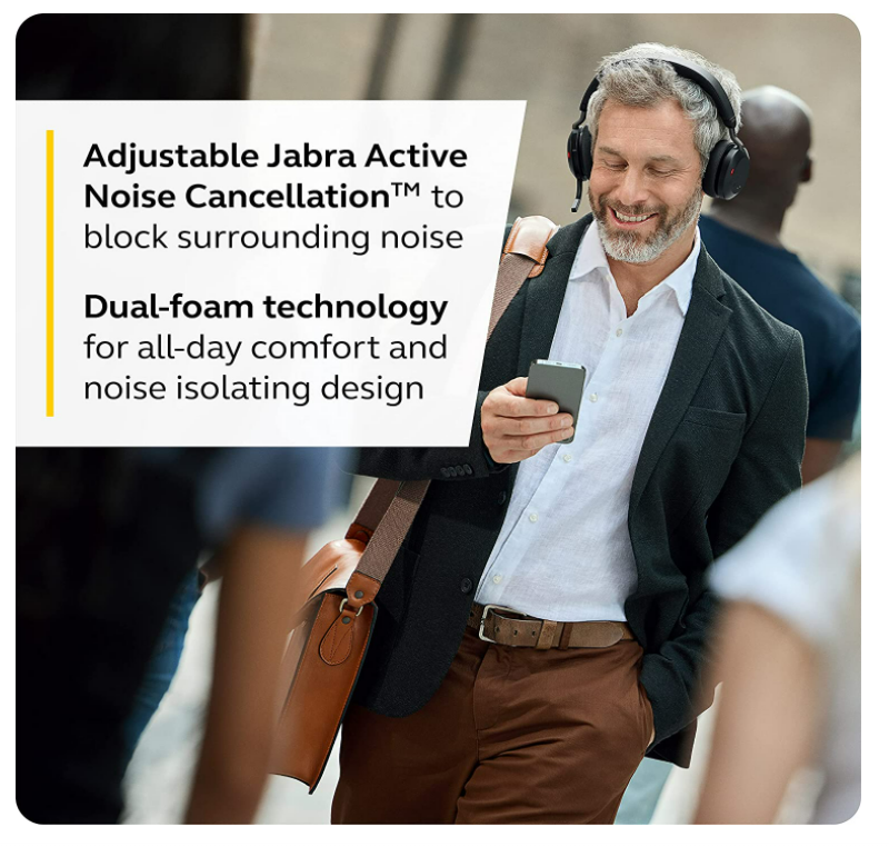 Advanced ANC = better concentration.For the first time, we’re bringing our fully adjustable Jabra Advanced Active Noise Cancellation (ANC) to a professional headset, to give you maximum control over your own concentration. With 11 settings to choose from, ANC levels can be tailored to suit your changing needs using the Jabra Sound+ app, to create your own portable focus zone, wherever you are.