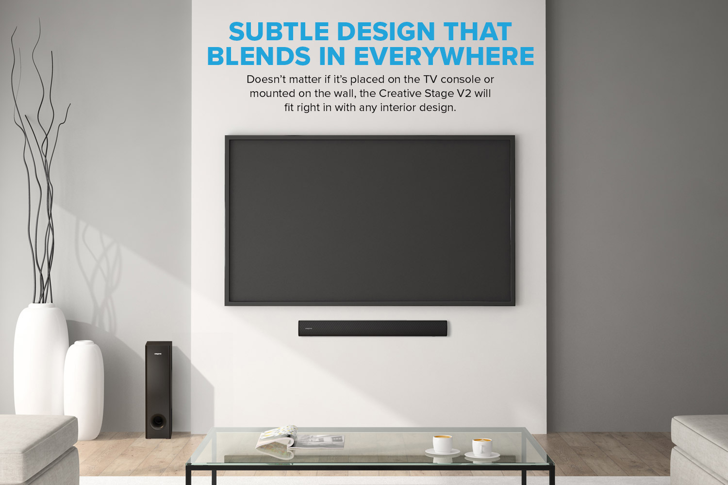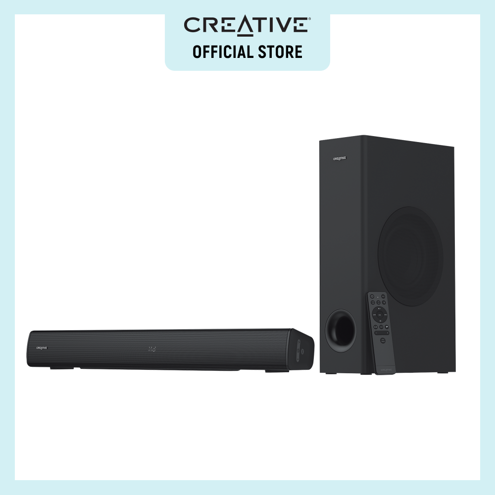 Creative Stage V2 - 2.1 Soundbar with Subwoofer, Clear Dialog and Surround by Sound Blaster, Bluetooth 5.0, TV ARC, Optical, and USB Audio, Wall Mountable, Adjustable Bass and Treble, for TV