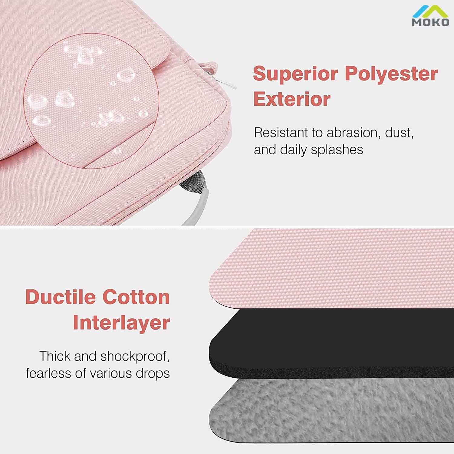 Combined premium polyester exterior and soft plush interior, this sleeve features excellent wear resistance, tear resistance, softness. Cotton interlayer is thick and shockproof, withstands various drops. Provides your device against scratches, bumps and shocks.