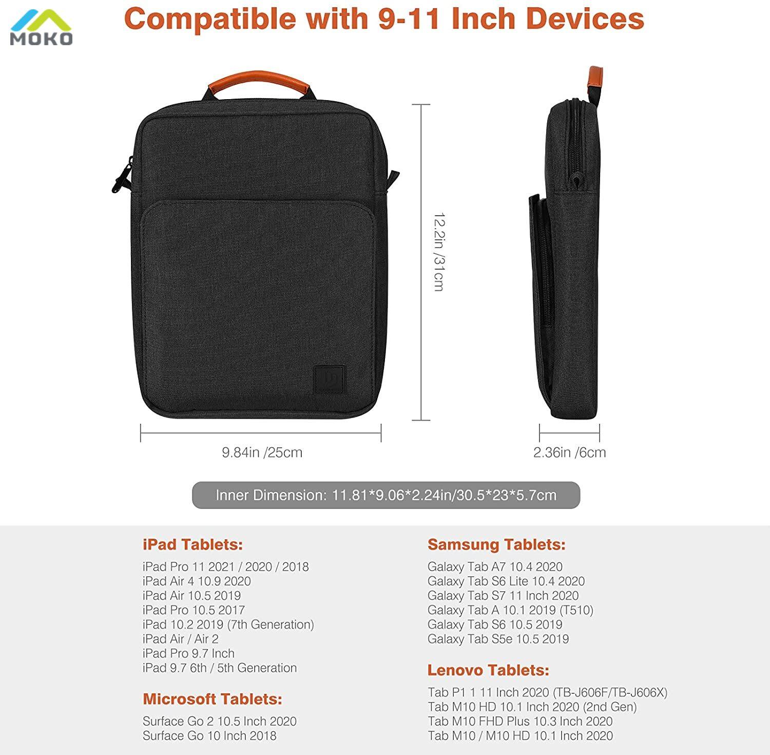 MOKO 9-11 Inch Tablet Sleeve Shoulder Bag for IPad 10.2 2021-2019, IPad Pro 11 2021-2018, IPad Air 4 10.9 2020, Galaxy Tab A8 10.5, Tab A7/S6 Lite 10.4, Tablet Protective Pouch Handbag