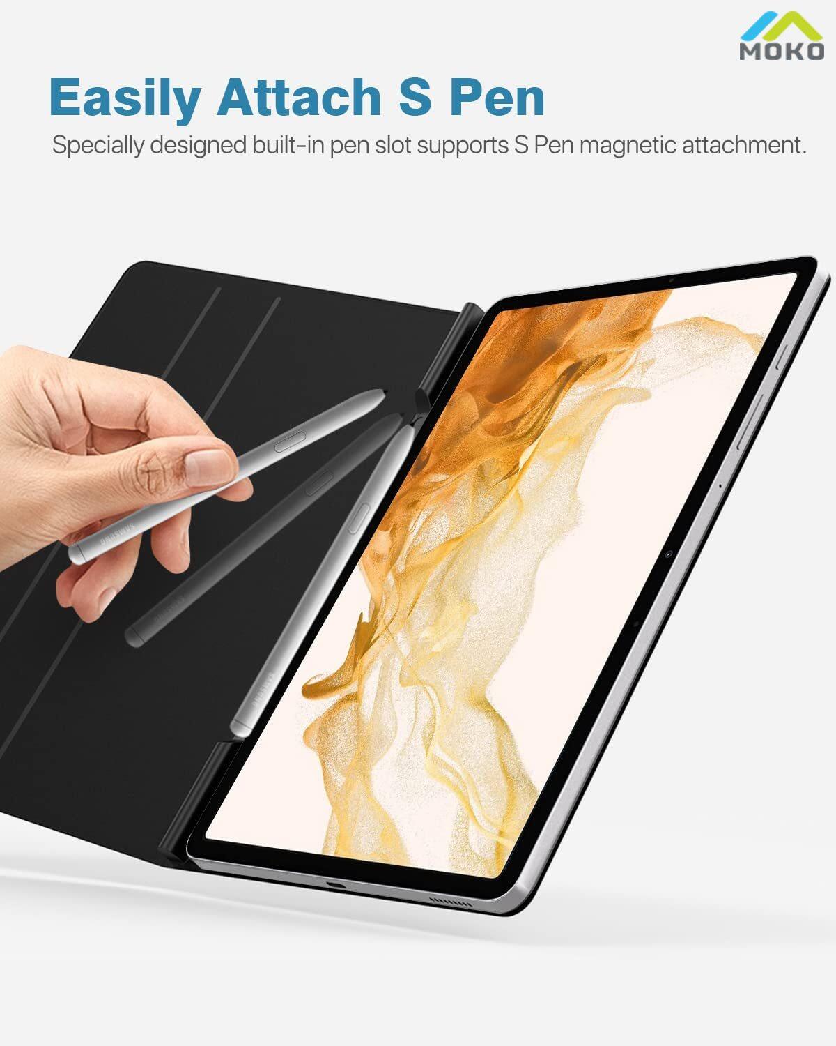 MOKO Case for Galaxy Tab S8 11 inch 2022 (SM-X700/SM-X706)/S7 2020 (SM-T870/T875) with S-Pen Holder, Slim Lightweight Magnetic Case with Auto Sleep/Wake Fit Galaxy Tab S8 Tablet, Light Purple
