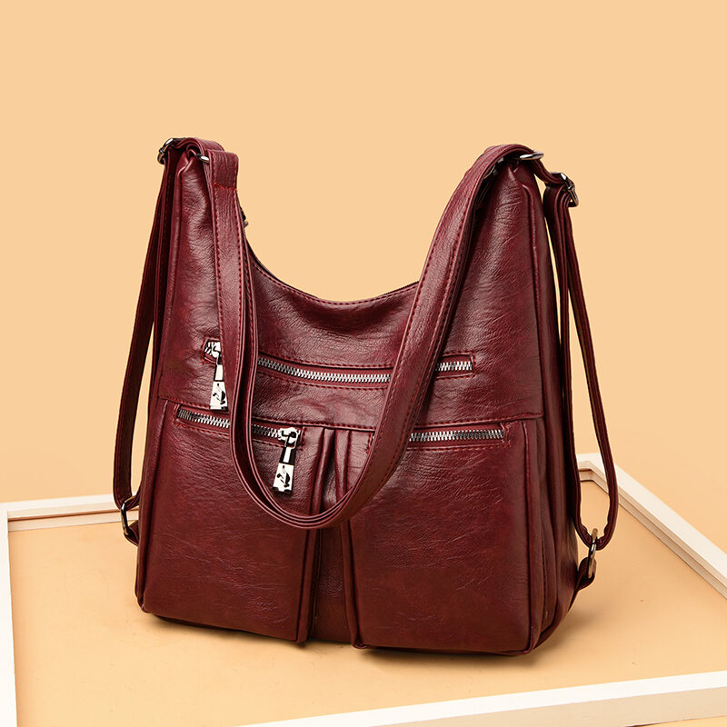 Genuine Leather Middle-Aged Women's Bag Large Capacity Soft Leather Mother Mother-in-Law Bag 2022 New Shoulder Backpack Dual-Use Bag Crossbody Bag