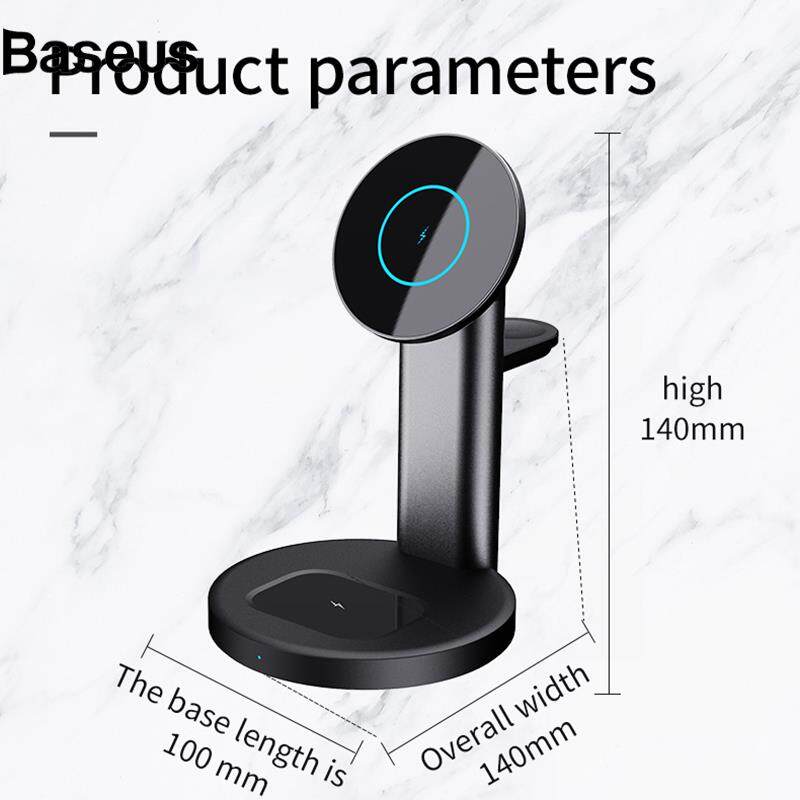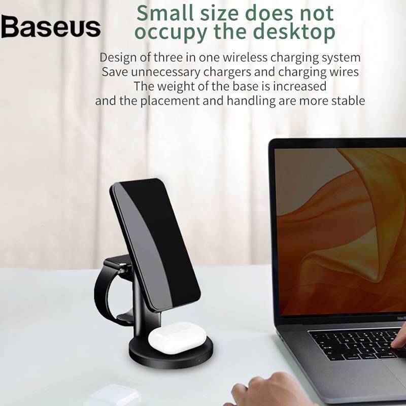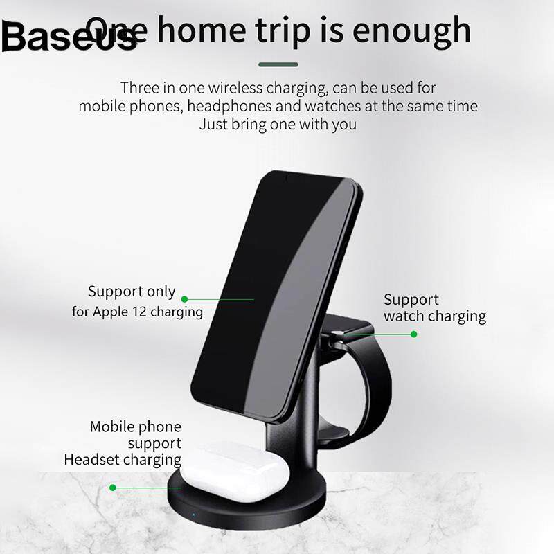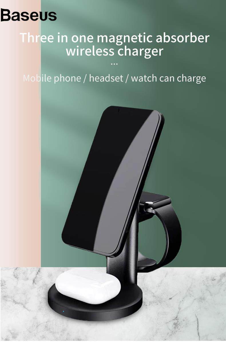 Baseus S36 3-in-1 15W Magnetic Wireless Charger Desktop Fast Charging Stand for iPhone 12 Series iWatch AirPods