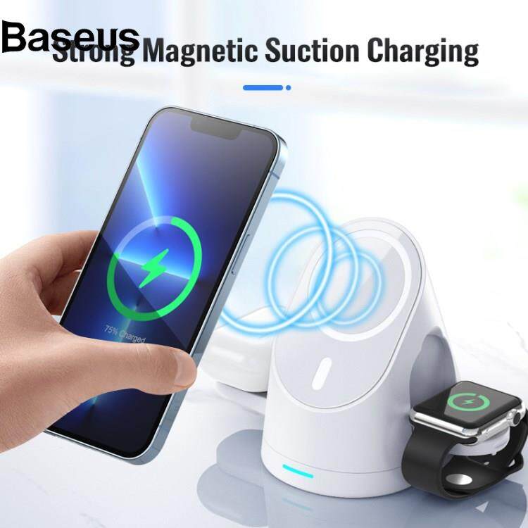 Baseus W-02 3 in 1 15W Wireless Charger for iPhone 13/12 Series/AirPods Pro Portable Charging Dock for Apple Watch
