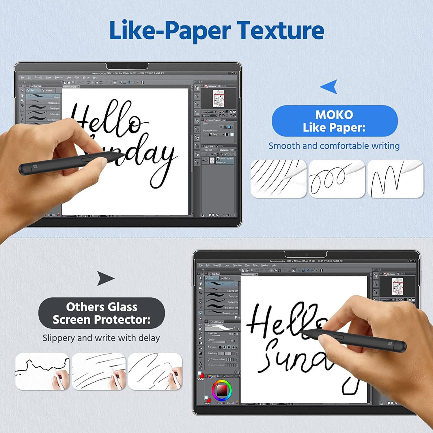 MoKo Like Paper screen protector designed specifically for Microsoft Surface Pro 8 13-Inch 2021 / Surface Pro X. The slide of the pen feels just like you're writing on paper.