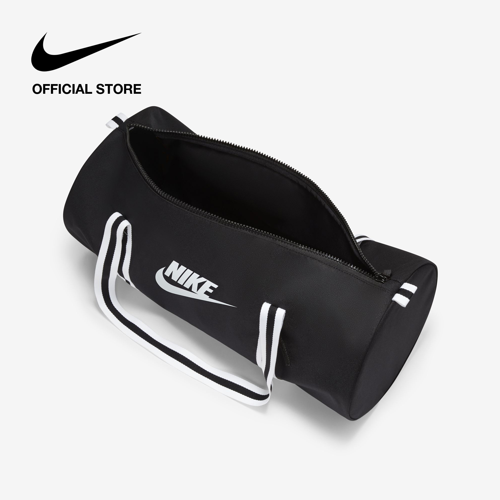 A tried-and-true travel companion, the Nike Heritage Duffel Bag offers extra storage when you need it. Its minimalist design is accented with striped woven details for a throwback look. An accessories pocket on the front panel provides secure small-item storage. This product is made with at least 65% recycled polyester.