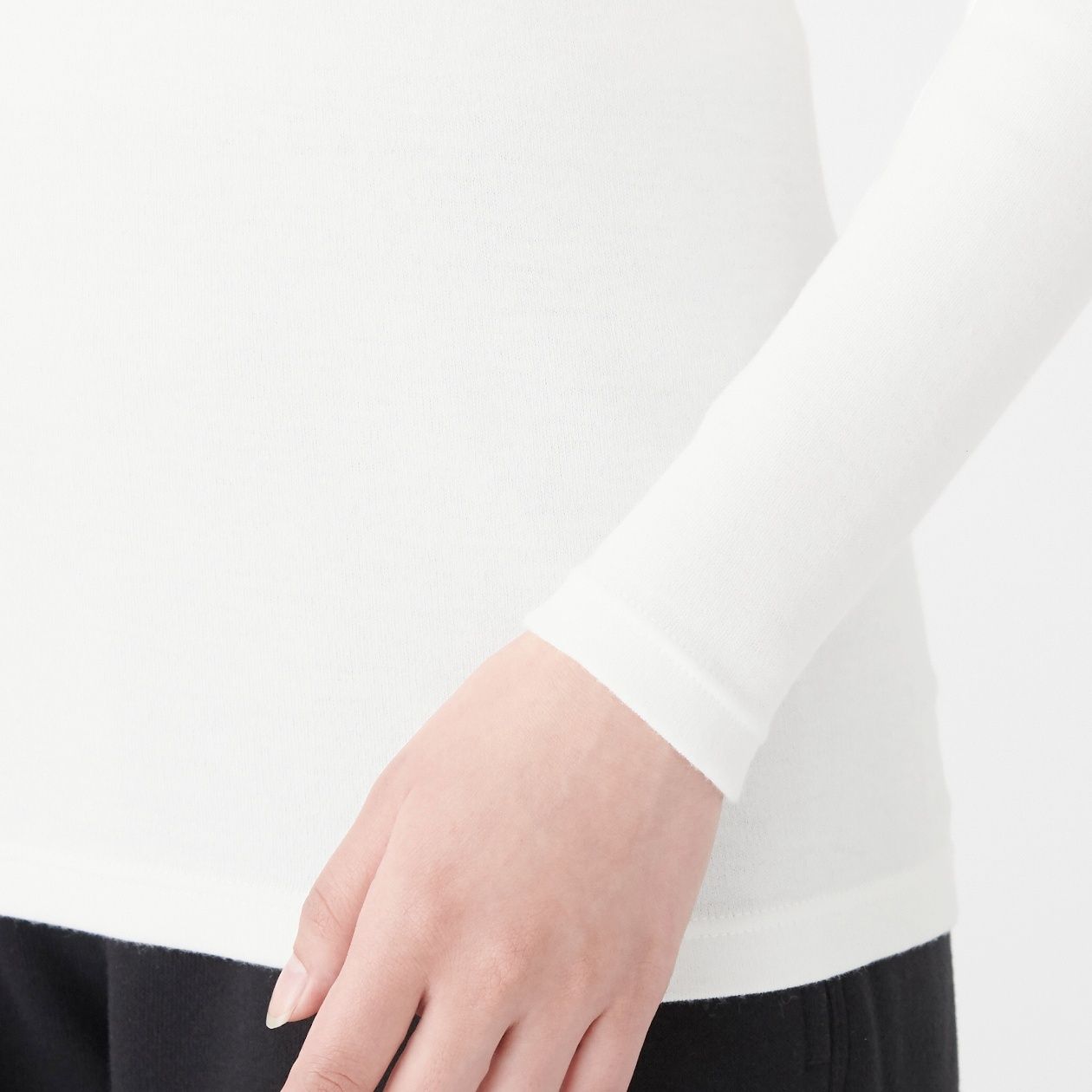 MUJI Ladies Cotton Wool Smooth High Neck Long Sleeve T-Shirts