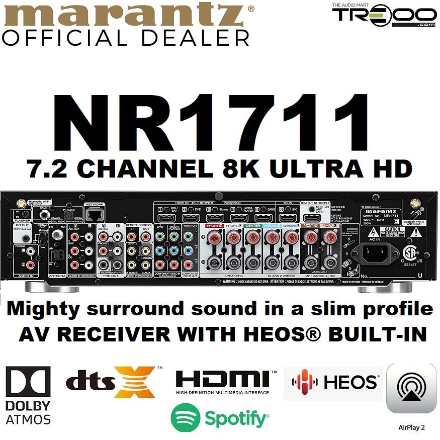Marantz NR1711 Multi-Room Wireless Bluetooth/WiFi/Ethernet Network Streamer & 7.2 Channel Hi-Fi AV Receiver`
