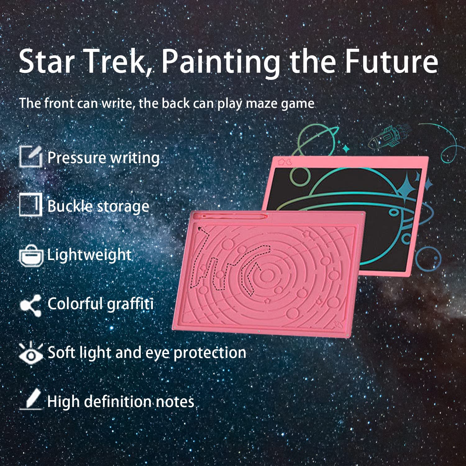 - Easy to Use & Eyes Protection: No need to worry about being difficult to use, just like using a pen and paper. Draw what you want, can easy to erase the full screen only by one erase button. Eyes protection and Paperless designed drawing board is without electromagnetic radiation, It’s great fun for writing and drawing.