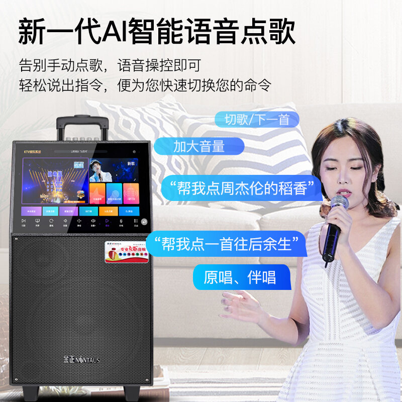 Jinzheng Square Dance Audio With Display Screen Mobile Outdoor Karaoke Speaker Wireless Microphone Karaoke All-In-One Machine