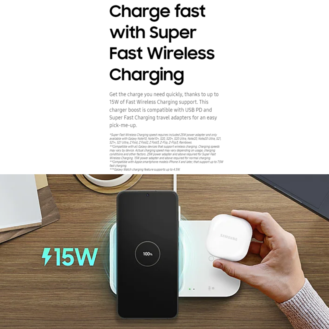 Samsung 15W Wireless Charger Duo (P5400) | with 25W PD Adapter & Type C Cable