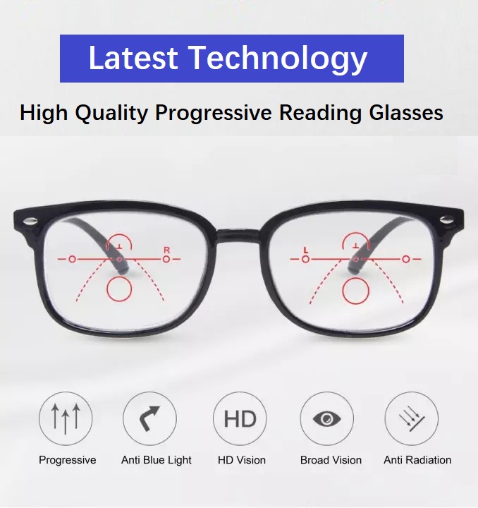 (Gift for Parents) JS-EyeCare TR90 Multifocal Progressive Presbyopic Presbyopia Reading Glasses Anti Blue Ray Light Anti Glare Computer Spectacles (JS-019)