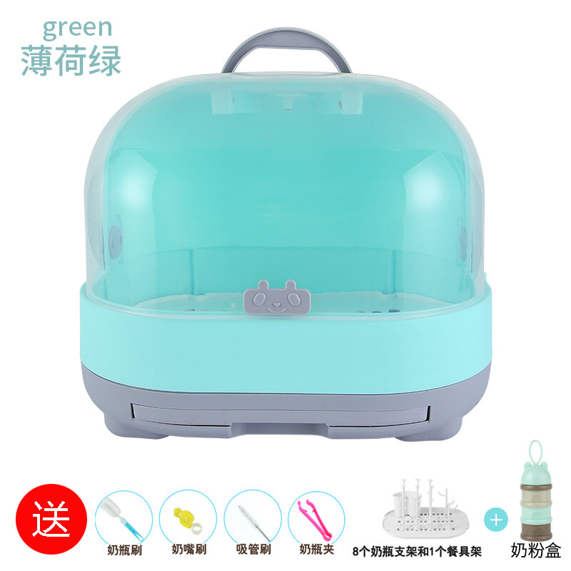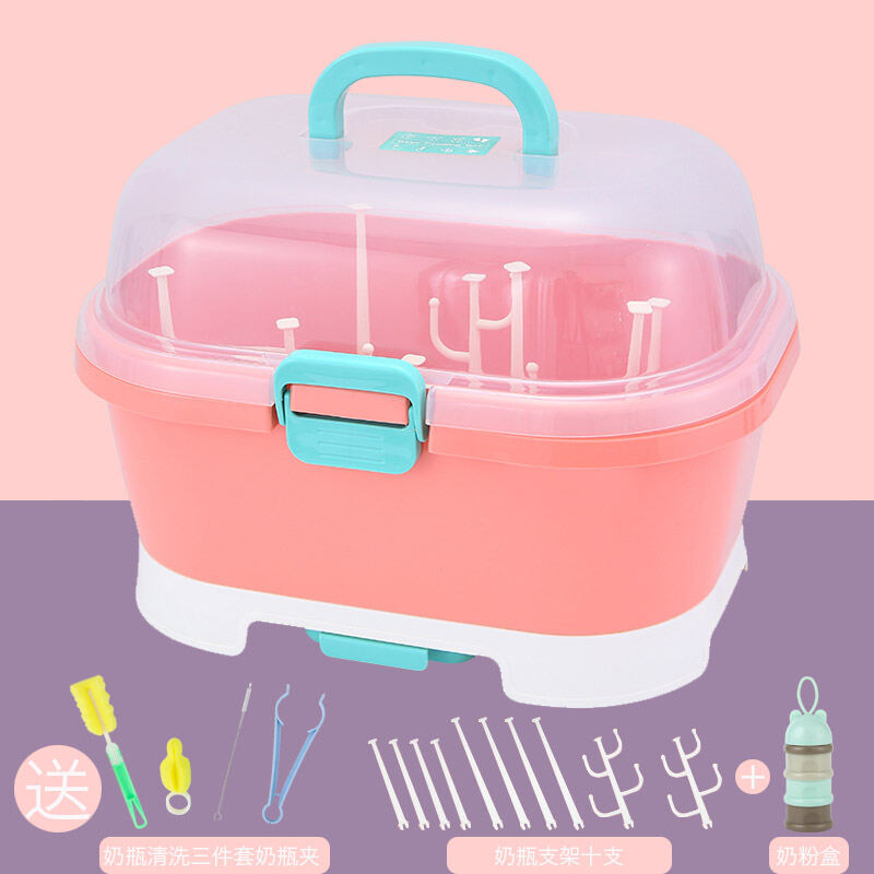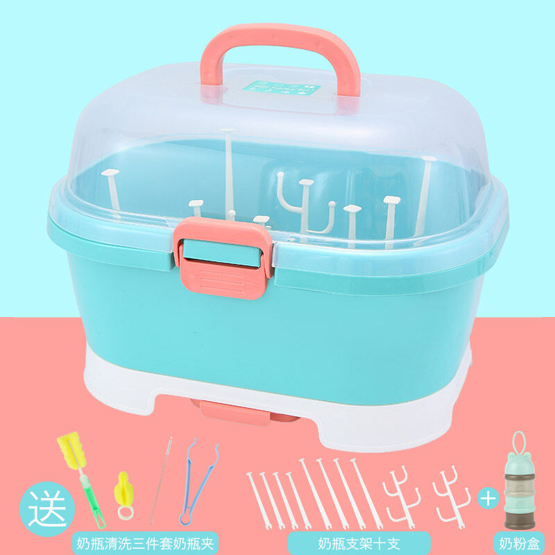 Baby Bottle Storage Box Portable Dustproof Draining Rack with Lid Baby Tableware Milk Powder Storage Box Shelf