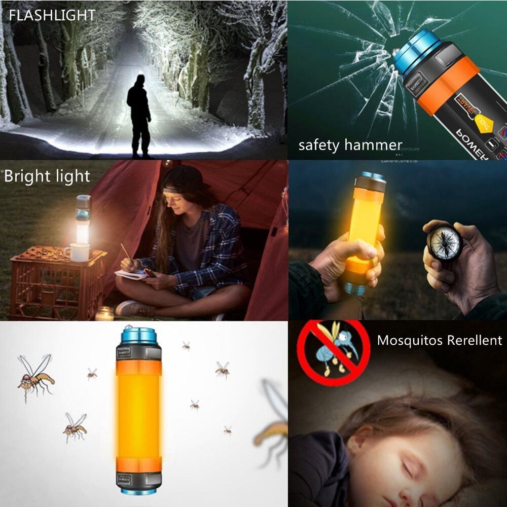 Haixnfire LED Camping Lantern with Magnet Tent Light USB Outdoor Emergency Power Light Flashlight Mosquito Repellent