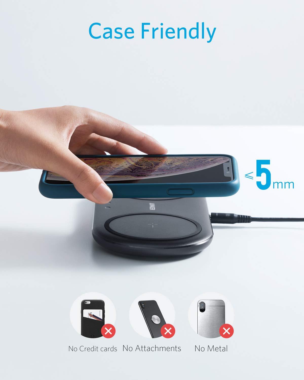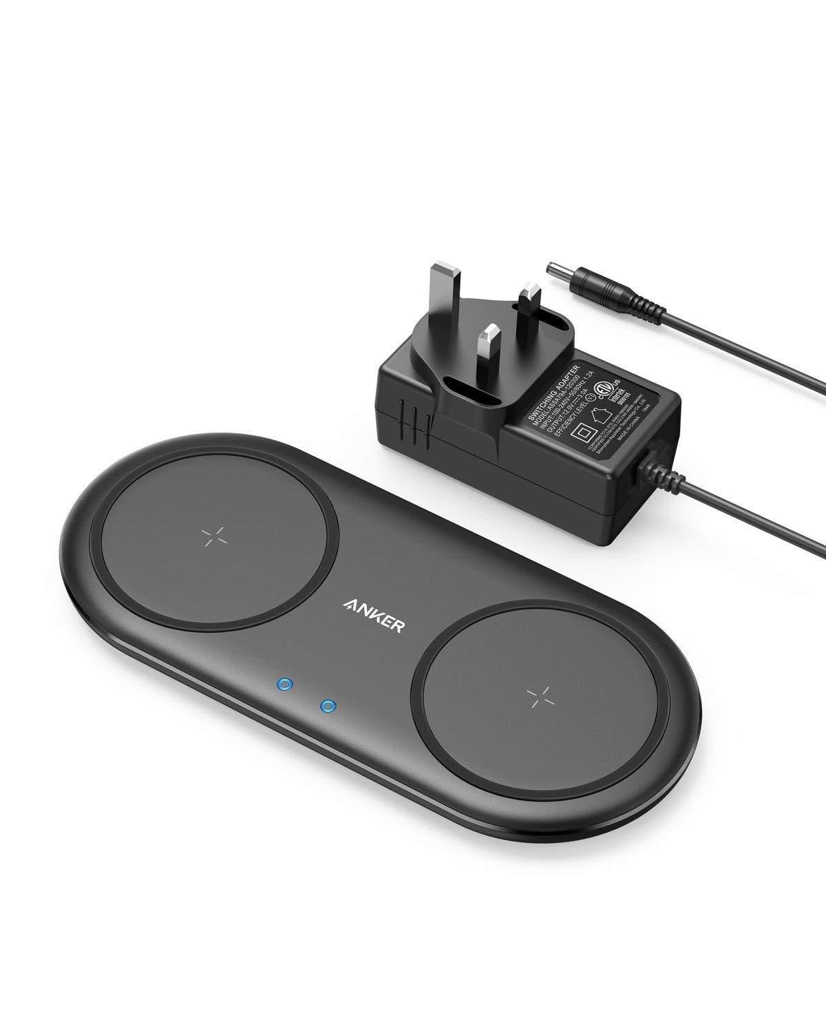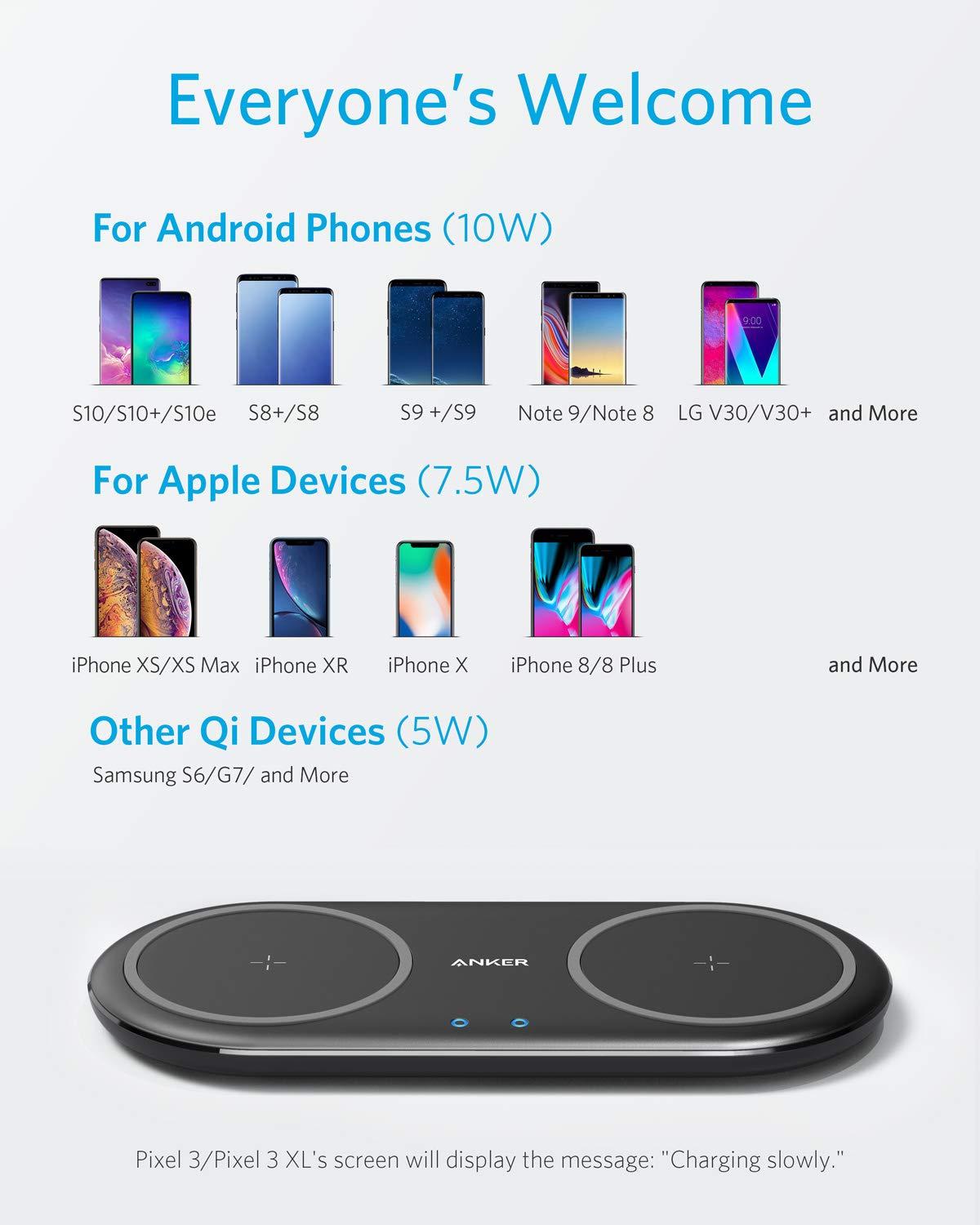 Anker PowerWave 10 Dual wireless charging Pad, Qi Certified 7.5W Compatible iPhone XS Max/XR/XS/X/8/8 Plus, 10W Charges Galaxy S10/S10+/S9/S9+/S8/S8+/Note 8, and 5W Charges All Qi-Enabled Phones, DC A