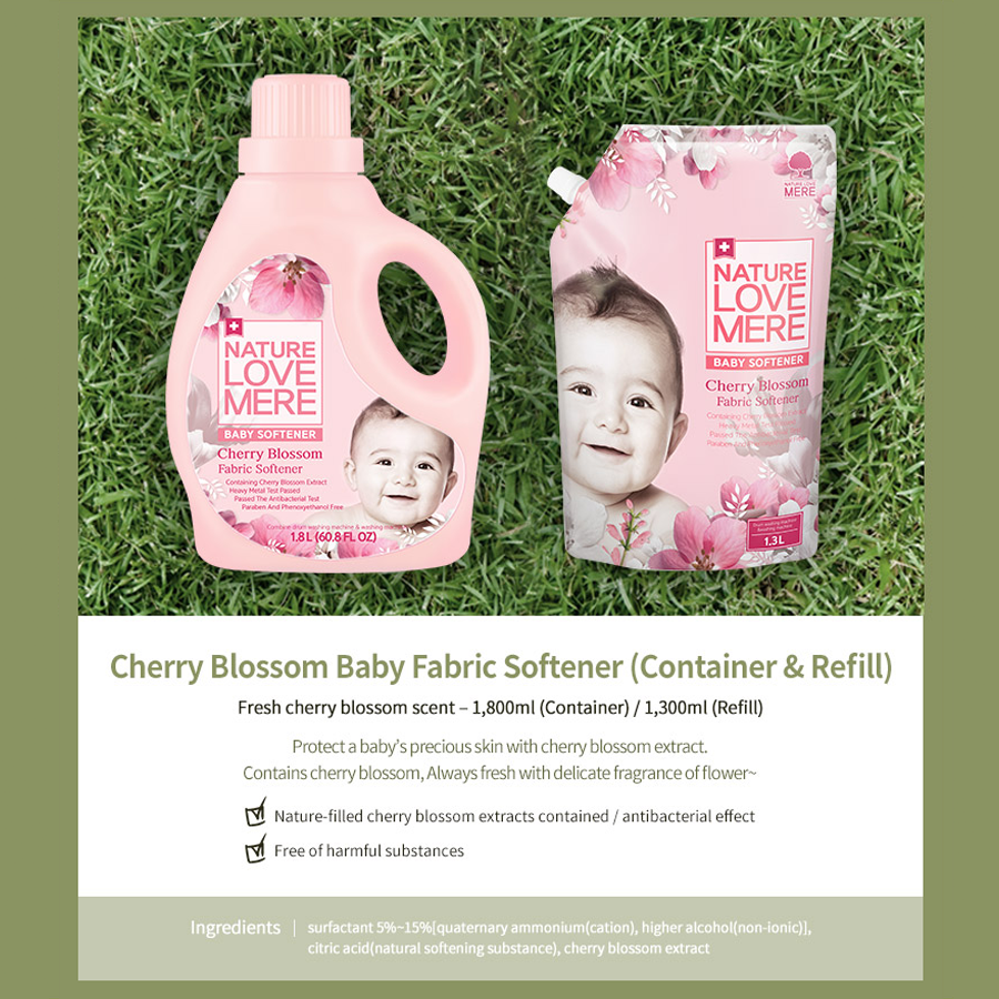 【Nature Love Mere 네이쳐러브메레】4 Refill Bundle Packs Baby Fabric Softener Cherry Blossom Korea Natural Premium Cleaning agent - by the dinky shop