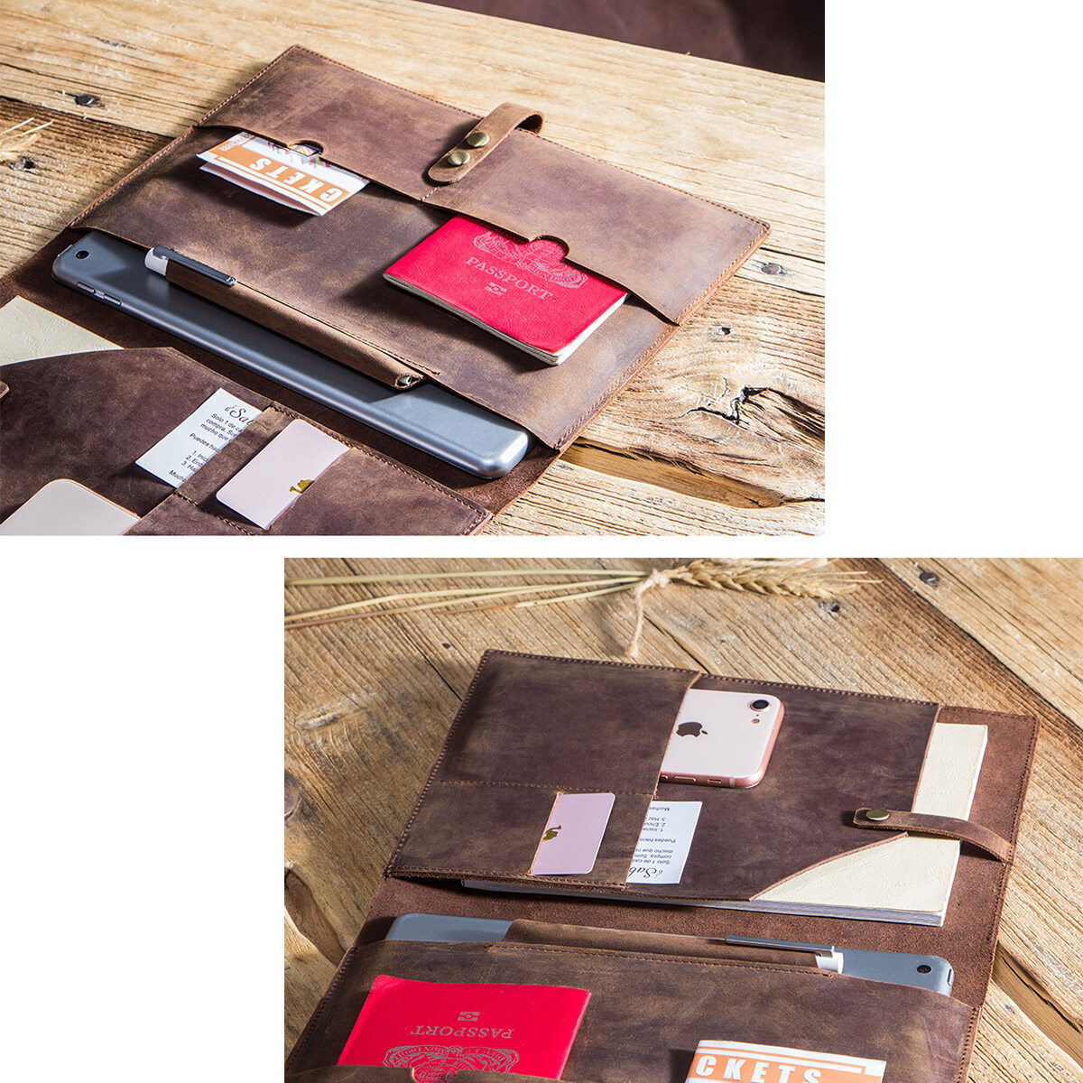 CONTACTS FAMILY Retro Crazy Horse Cow Leather Case For iPad 9.7 10.2 10.5 10.9 11 inch iPad Air 5 MacBook Tablet Laptop Pouch Notebook Bag